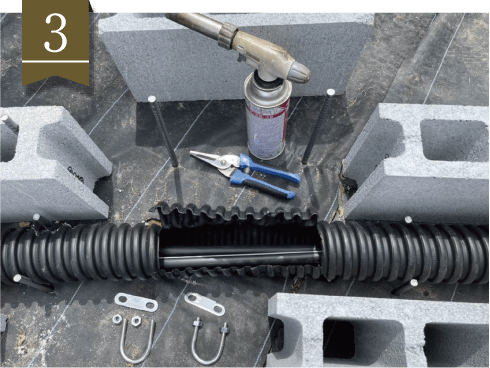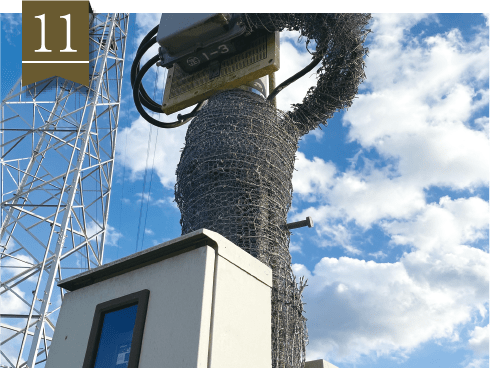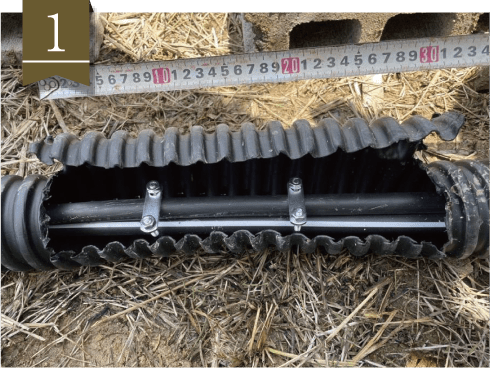 保護管や配線が縦の場合は鉄網4重巻き、有刺鉄線1センチ間隔、接着剤等を